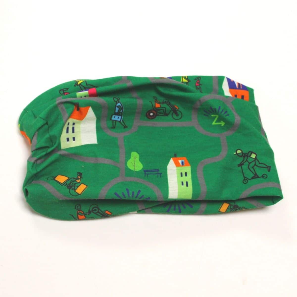 It’s much more than a neck warmer as it can serve as a face mask too so it’s good for all seasons. How you wear it is up to you – as a scarf, hat, hair band or wrist band. You can fold it, wrap it or twist it. Use for walking, cycling, scooting or any outdoor activity. Perfect, low cost, practical incentive for your active travel campaigns.
