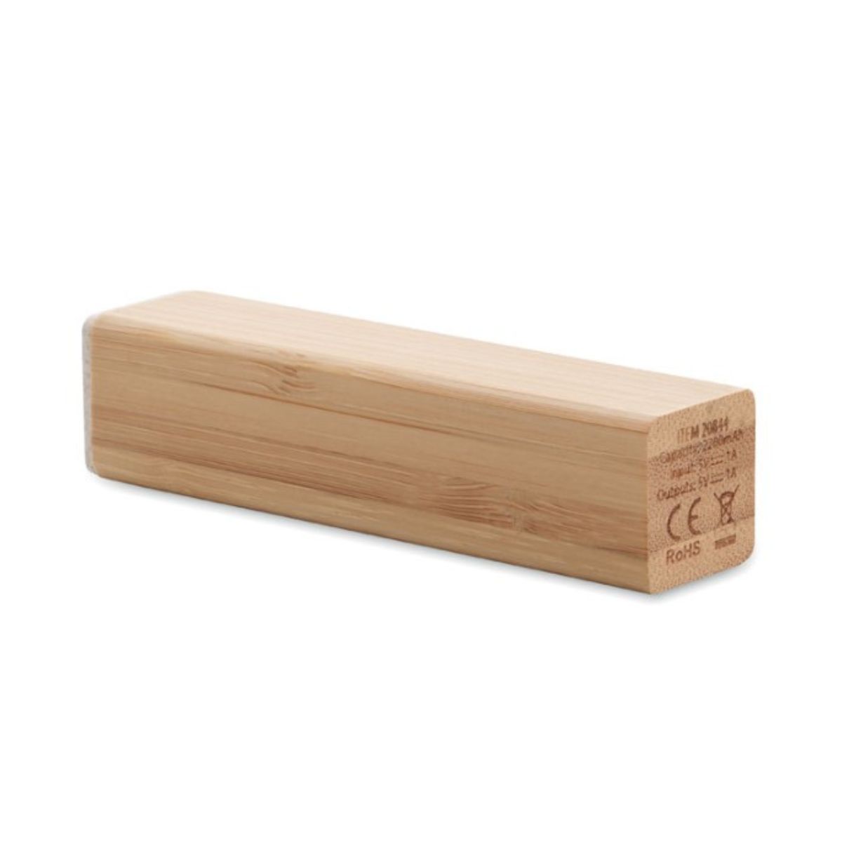 Power bank 2600 mAh in a naturally sustainable bamboo case printed with your logo or design. Capacity for smartphone.